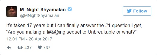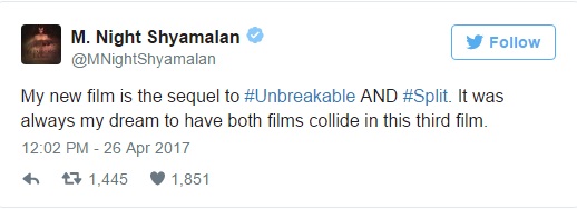 Along with the news, Shyamalan stated, "It was always my dream to have both films collide in this third film."