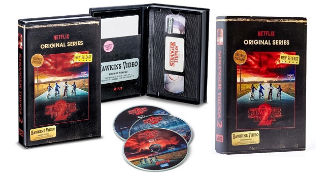 Last year the powers that be at Netflix joined forces with Target and gave all of us a killer retro VHS Blu-ray edition of the hit nostalgia series STRANGER THINGS. And thankfully, it looks like the two powerhouses are combining forces again on last year's hit follow up season. Yes, beginning yesterday, your local Target began carrying STRANGER THINGS 2 on Blu-ray with a badass VHS-style packaging. This new edition is available on 4K and on standard Blu-ray/DVD. You can check out pics of the new collections below and then let us know you plan to snag a copy or two!