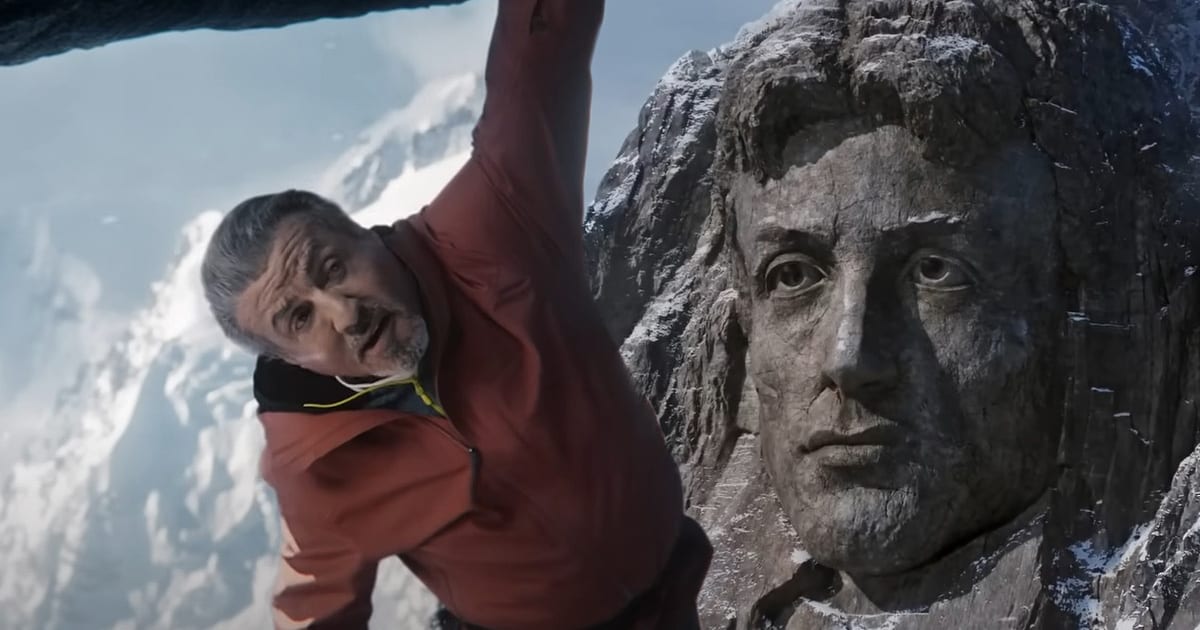 In the ad, Stallone channels his inner Gabe Walker to scale Paramount’s Mountain of Entertainment. The landscape includes a mountain in the shape of Stallone’s face. As various Paramount characters look on, Stallone attempts to climb the cliff, unaware the crag is about to sneeze. As Dora the Explorer, Anson Mount, Tom Lenon, and others look on in horror, Stallone’s family (Jennifer Flavin Stallone, Sophia Stallone, Sistine Stallone, and Scarlet Stallone) assures them he does this sort of thing all the time. It’s not long before Stallone gets sneezed off the cliffside, landing like a bulky snow angel on the ground, moaning in pain. Perhaps he’s not as spry as he used to be.