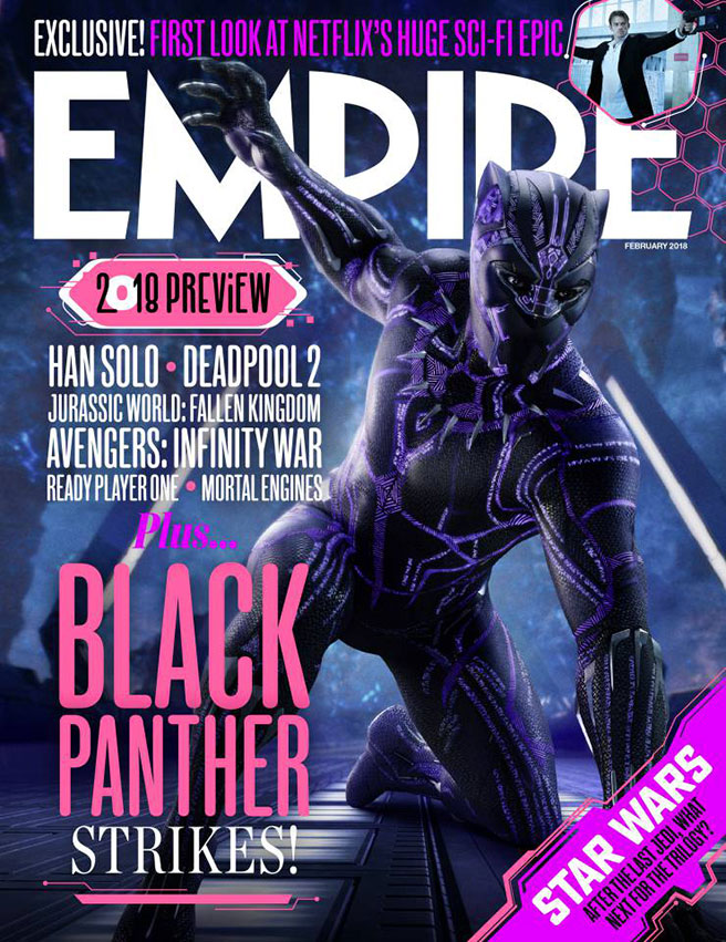 For those interested in grabbing the magazine you can take a look at the very purple cover below (as well as the awesome subscriber’s cover below that), which also features a fantastic, detailed look at Panther’s vibranium suit and all the little designs across the whole thing. Iron Man’s duds are starting to look a little retro, amiright?