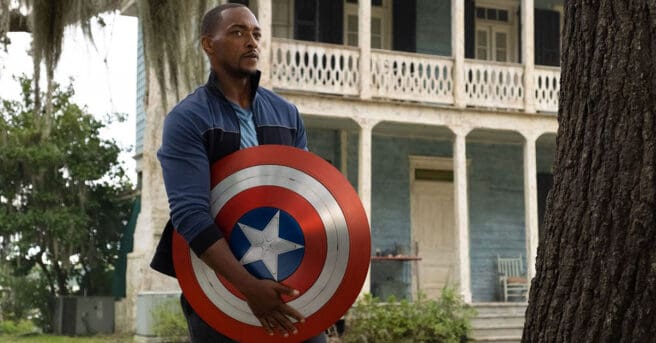 A theatre standee and a popcorn bucket build the hype for Captain America's confrontation with the Red Hulk