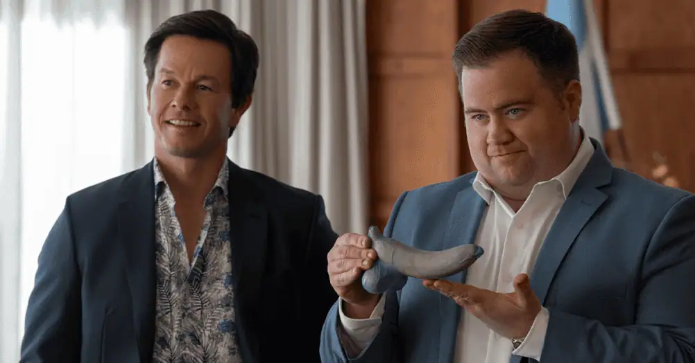 Paul Walter Hauser and Mark Wahlberg don't seem fully invested in this comedy that cares more about absurdity than actual jokes