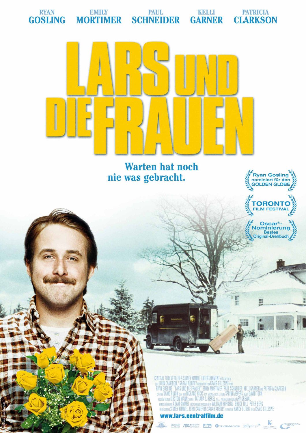 Written by Six Feet Under scribe Nancy Oliver, Lars and the Real Girl is a heartfelt comedy starring Academy-Award nominated Ryan Gosling as Lars Lindstrom a loveable introvert whose emotional baggage has kept him from fully embracing life. After years... See more of what is almost solitude, he invites Bianca, a friend he met on the internet to visit him. He introduces Bianca to his Brother Gus (Paul Schneider) and his wife Karen (Emily Mortimer) and they are stunned. They don’t know what to say to Lars or Bianca – because she is a life-size doll, not a real person and he is treating her as though she is alive. They consult the family doctor Dagmar (Patricia Clarkson) who explains this is a delusion he’s created – for what reason she doesn’t yet know but they should all go along with it. What follows is an emotional journey for Lars and the people around him.