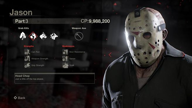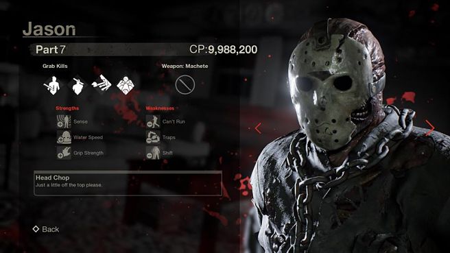 The stat screens for all seven of the game's Jasons have now been revealed and can be seen below, giving us a close-up look of the designs and also offering a preview of each version's strengths, weapons, and weaknesses.