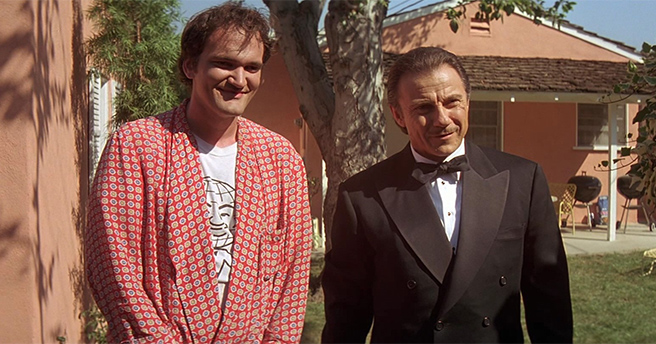 During the scene, the boys use the home as their base of operations while Mr. Wolf (Harvey Keitel) walks them through the process to get the car, and themselves, looking spick and span. They drink some delicious gourmet coffee, clean up the car, and then Jules and Vincent take a hose bath and end up dressing up like a couple of dorks.
