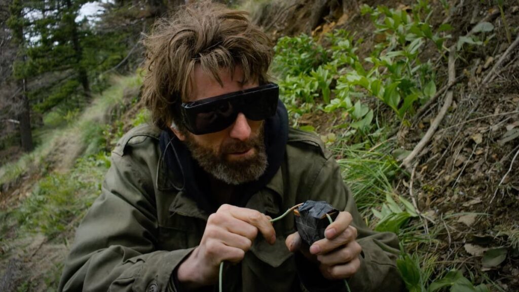 Filmed on location in Lincoln, Montana where Kaczynski lived during his reign of terror, Tony Stone makes exquisite use of the natural landscapes that inspired the manifesto of The Unabomber. From the opening title sequence showing a family on snowmobiles disrupting the natural order while Kaczynski looks on, Ted K presents itself as a portrait of a broken mind. Sharlto Copley provides voice-over narration throughout the film quoting Kaczynski’s writing verbatim which is a chilling reminder of the hundreds of thousands of pages he wrote while isolated in the wilderness. Copley, who is in every scene of Ted K and often by himself, evokes the mannerisms, voice, and even the posture of Kaczynski. Most other actors have not gone to such a length but Copley fully inhabits this character to a level reminiscent of Joaquin Phoenix in Joker. Sharlto Copley evokes many elements of Asperger’s syndrome or other autistic tendencies but never to the point of caricature.