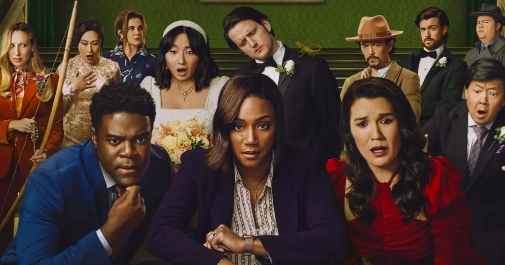 The new season of The Afterparty finds Aniq (Sam Richardson) and Zoe (Zoe Chao) attending the wedding of Zoe’s sister Grace (Poppy Liu) to crypto magnate Edgar (Zach Woods). Looking to make a good first impression with Zoe’s parents Feng (Ken Jeong) and Vivian (Vivian Wu), the couple finds themselves embroiled in yet another murder. When Edgar is killed, Aniq calls in former detective Danner (Tiffany Haddish), who helped crack the case last year. With multiple suspects around, including Edgar’s suave business partner Sebastian (Jack Whitehall), Edgar’s adopted sister Hannah (Anna Konkle), Edgar’s loony mother Isabel (Elizabeth Perkins), Grace’s long-lost Uncle Ulysses (John Cho), and the wacky Travis (Paul Walter Hauser), anyone could be the killer. As expected, Danner interrogates each suspect, and their stories follow the genre conventions that fit their personalities.