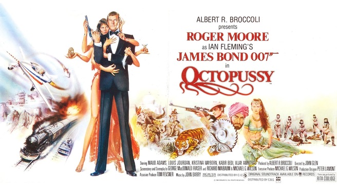 THE STORY: After 009 is found dead with a fake Faberge egg in East Berlin, 007 is sent to India, hot on the trail of Kamal Khan (Louis Jourdan) who he suspects may be a forger involved in Cold War smuggling, but is actually working in cahoots with a mad Soviet General planning to start World War 3. Luckily, he has an ally in Khan’s smuggling partner, the beautiful Octopussy (Maud Adams) who rules an island populated by female thieves and acrobats.