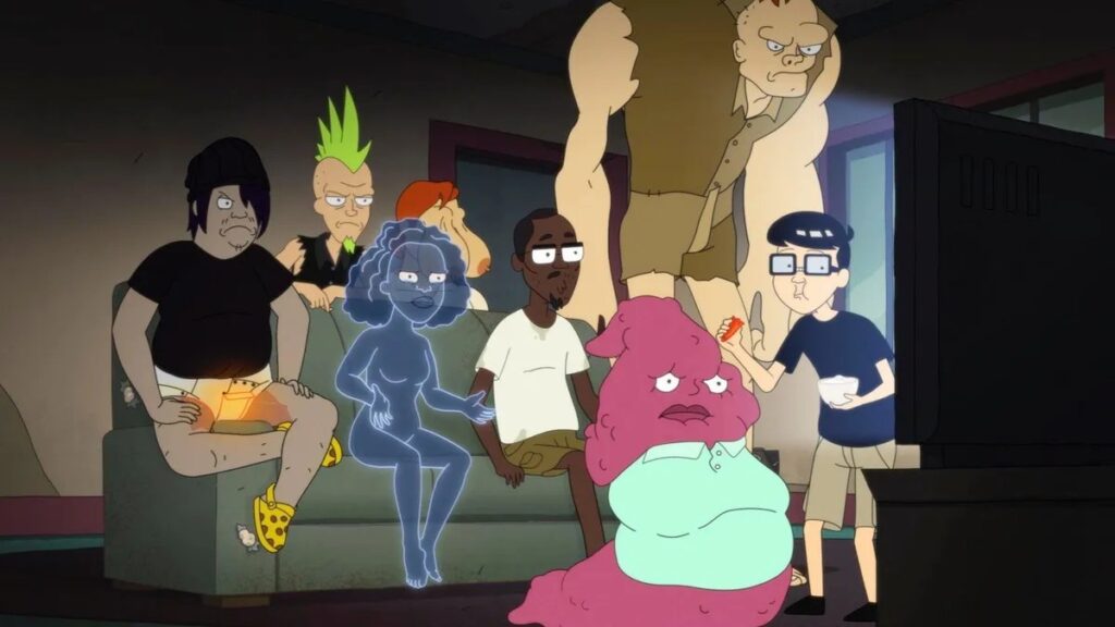 There are some stand-out episodes in this batch of eight stories and what is most impressive is the range of talent scripting as well as voicing this anthology. In “Laser Baby’s Day Out”, Ben Schwartz provides the human voice to the script by Seth Rogen and Evan Goldberg. The second episode, from Rick & Morty scribe Justin Roiland, feels right at home in this world and showcases a massive cast that includes Christian Slater, Kenan Thompson, Cobra Kai’s Xolo Mariduena, and Kevin Smith as the funniest and most unfortunate superhero ever. “Boyd in 3D” by Eliot and Ilana Glazer is a fun romantic-themed entry that looks the most like a cartoon while telling one of the more developed stories in the series. The same goes for “John and Sun-Hee” which was written by Andy Samberg. While you may expect it to be hilarious like his work with The Lonely Island, you may be pleasantly surprised at how unexpected it is.