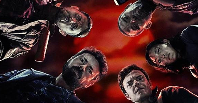 Over the weekend, THE BOYS showrunner Eric Kripke (SUPERNATURAL) shared a bloody good pic from the set of THE BOYS. In the photo, Kripke can be found standing alongside cast members Tomer Capon (Frenchie), Karen Fukuhara (The Female), Jack Quaid (Hughie Campbell), and Laz Alonso (Mother's Milk) (left to right). As you can see from the photo posted below, Fukuhara, Quaid, and Alonso are drenched in blood, giving us a clear indication that Billy Butcher's (Karl Urban) team is still up to no good during the events of the second season.