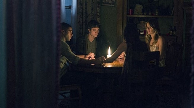 Problem is, among many, The Bye Bye Man is neither convincing, nor very well defined. He has the ability to slowly possess you, make you see things you don’t want to see, but can also turn you into a psycho-slasher killer. More duplicitous, he has the ability to get into your head, manipulate your thoughts and pit you against your own loved ones. In the case of our three leads, The Bye Bye Man drives an emotional wedge between lovers, causing paranoid ill-will and motivated murder among all three. A laughably rote horror movie séance is conducted by Sasha’s friend, Kim (Jenna Kanell), and soon The Bye Bye Man’s name lies dangerously on the lips of all involved. If the name is uttered, or even thought of, death abounds. Elliot, the Rilke quoting, Joy Division shirt donning hipster, does all he can to not only keep Sasha out of grave peril, but his older brother Virgil (Michael Trucco), Virgil’s wife Trina (Marisa Echeverria) and daughter (Erica Tremblay) as well. Unfortunately, not one of these characters are compelling enough to give a scintilla of a damn about.