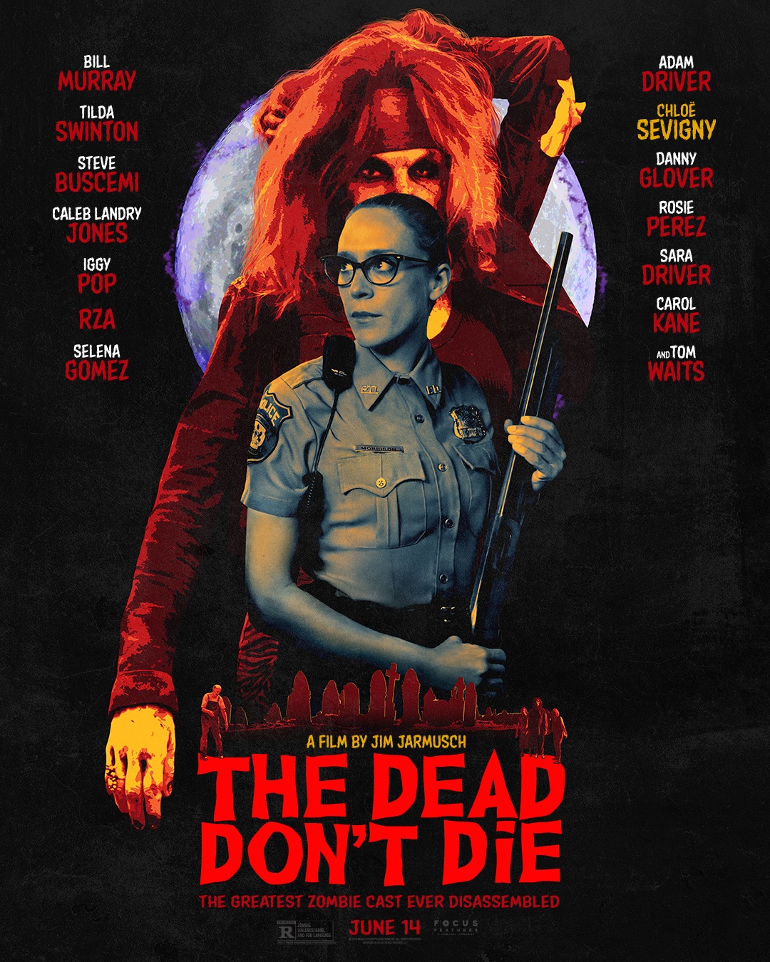 THE DEAD DON’T DIE boasts to have "the greatest zombie cast ever disassembled" and this includes Bill Murray as Chief Cliff Robertson, Adam Driver as Officer Ronald Peterson, Tilda Swinton, Chloë Sevigny as Minerva Morrison, Steve Buscemi as Farmer Miller, Danny Glover as Hank Thompson, Caleb Landry Jones as Bobby Wiggins, Rosie Perez as a news reporter, Iggy Pop as a zombie, Sara Driver as a zombie, RZA, Carol Kane as a zombie, Selena Gomez as Zoe, Tom Waits as Hermit Bob, Austin Butler as Jack, and Luka Sabbat as Zach.
