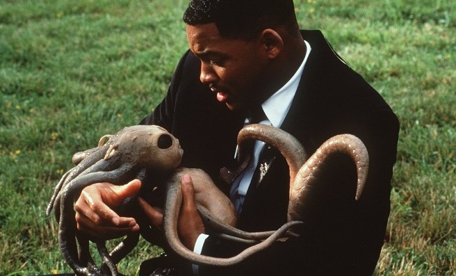 It’s true though, folks. Barry Sonnenfeld’s international smash hit MIB – a silly, FX-laden cartoon marvel of epic proportions – celebrates its 20th birthday in a few days. But instead of feting the flick with effusive plaudits and fawning praise, I must be honest. As a family friendly, PG-13 mega-spectacle expressly intended for someone like me at the time (14 years old), I admit here and now that I wasn’t much a fan of the film then, and damn sure aren’t a big one now. The reasons? We’ll delve into them deeper below, but the short and simple of it is this: all style and no substance. Damn fine on the eyes, quite vacuous on the mind. Don’t get me wrong, I dig the chemistry between Agents J and K…the droll interplay between gregarious Big Willy Smith and laconic Tommy Lee Jones, but come on, witty banter a great movie does not make. Besides, the movie sways too drastically from the source material!