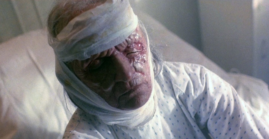 Cue the killer carnage! It turns out one of the teens that killed Tommy was Danny’s father, Judge Dixon (Steve Kanaly). The judge becomes one of six targets of Tommy’s vengeful ire when he indeed returns as a deformed Pumpkinhead offshoot, with four innocent bystanders catching Tommy’s merciless wrath along the way. And yes, this is where the bulk of fun is to be had in BLOOD WINGS: the delicious death scenes. Burr not only imbues his trashy screenplay with a wild atmospheric energy, he makes damn sure that every time Tommy is summoned onscreen, he comes backlit with a lightning strobe effect that just feels like the kind of horror movie we all grew up loving. Between that and the trippy red Pumpkinhead POV, it just feels like we’re in for a good old fashioned fright flick.
