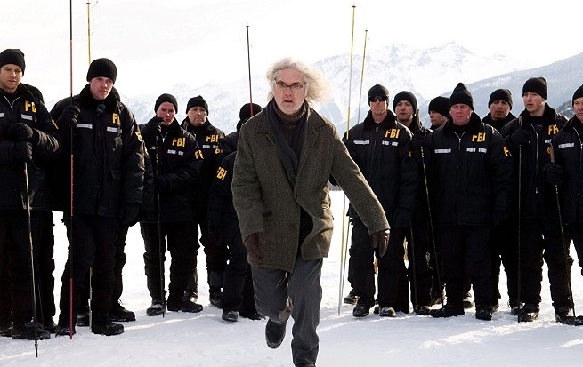 Now let’s delve into the nitty-gritty. If the first X-FILES flick focused more on Mulder’s storyline of alien invasion and his sister’s abduction, I WANT TO BELIEVE concentrates more on Scully’s skepticism and clinical adherence to scientific fact. Much of her contentious nature in the film is due to her skeptical view of Father Joseph Crissman (Billy Connolly), a defrocked Catholic priest convicted of molesting 27 altar boys, who claims to have psychic visions of women being abducted and murdered in the wintry West Virginian town of Somerset. The latest victim? A female FBI agent named Monica Bannen (Xantha Radley). FBI agents Dakota Whitney (Amanda Peete) and Mosley Drummy (Xzibit) recruit our pals Mulder and Scully, the former of which dwells in bored, thumb-twirling isolation (being on the lam after agency banishment and all), the latter now working as a staff physician at a Catholic hospital. Reluctant at first, the two agree to investigate the case, as victims continue to get mowed off the snowy roads by a maniac in a snowplow, which ultimately leads to the stunning revelation of a nefarious organ-harvesting operation by a team of evil Euro-doctors. As always with Fox and Scully, shite gets nutty!