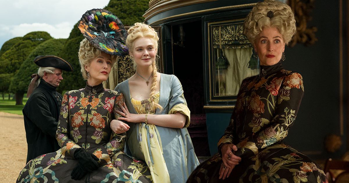 For The Great, Gillian Anderson isn’t the only cast member looking incredible in her high society finery. The period comedy also stars Elle Fanning as Catherine, Nicholas Hoult, Phoebe Fox, Adam Godley, Gwilym Lee, Charity Wakefield, Douglas Hodge, Sacha Dhawan, Bayo Gbadamosi, and Belinda Bronilow.
