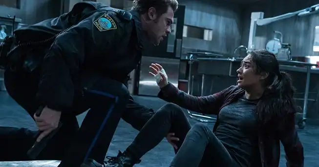 Let's start with the positive. The cast holds up well, with Shay Mitchell (PRETTY LITTLE LIARS) leading the charge as an ex-cop suffering from PTSD who takes the graveyard shift at her local morgue in an effort to stay off pills-n-booze following the death of her partner, which she was more than a little responsible for. Mitchell keeps our eyes on the screen and has an easy charm that was welcomed within the dark corridors of this flick. As for the rest of the cast, the movie is overly stocked with cannon fodder, um, I mean characters, but I enjoyed watching most of them, with highlights being Louis Herthum (WESTWORLD) as the grieving and possibly psycho father of the late Hannah Grace, Stana Katic as our heroine's co-worker and AA sponsor (who can look SUPER creepy when the occasion arises), and Maximillian McNamara as the already creepy-looking ginger-fro security guard with a blossoming crush on Mitchell. No joke, the most effective jumpscare comes via this redhead – and it's BEFORE he gets all "scary-looking."