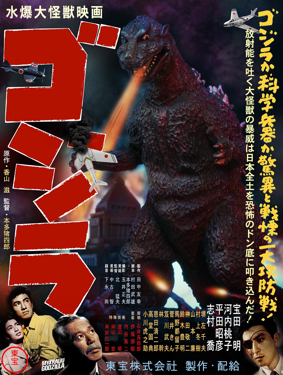 THE STORY: Widely considered to be a Japanese version of THE BEAST FROM 20,000 FATHOMS released one year prior (causing great ire from that films stop motion guru Ray Harryhausen), the name Godzilla is actually derived from a Japanese portmanteau, as it combines the name for gorilla (gorira) and the name for whale (kujira) to form Gojira, or Godzilla. Originally, the design of the monster was supposed to be a mutated hybrid of a gorilla-whale per its namesake, but as we’ll touch on below, was evolved over time by Toho Film. Producer Tomoyuki Tanaka got the idea for the story while returning from Indonesia, when he peered down into the sea and wondered what resided below the surface. Tanaka hired Shigeru Kayama to flesh out the story, who in turned hired Honda and Takeo Murata to pen the screenplay.