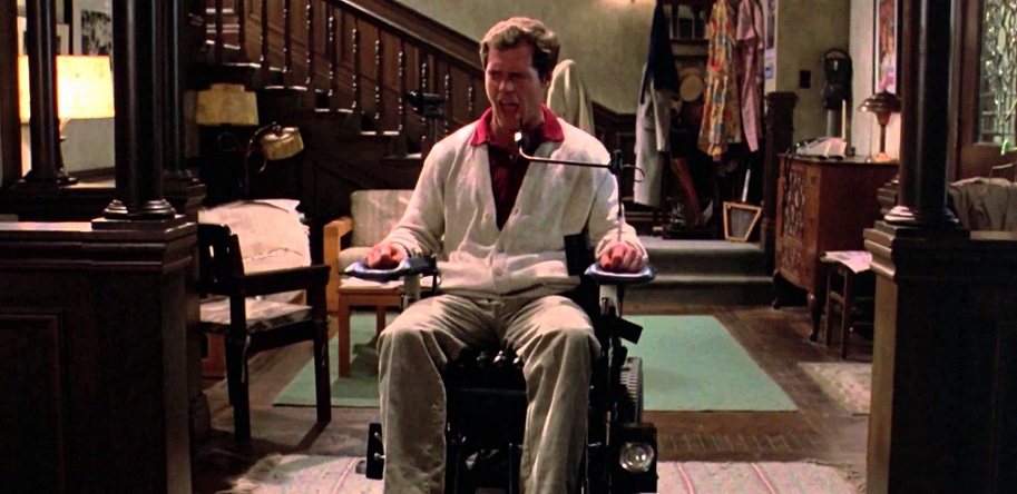 Other than that, the mostly bloodless onscreen kills and majority of off-screen death scenes don’t help the movies cause. It didn’t in 1988, and given how brutally violent and savagely graphic movies have become since, there’s an underwhelming tameness to some of the death scenes in MONKEY SHINES. Again, I don’t think graphic violence is at all the point of this movie, so it doesn’t hurt too much. What does smart a bit though is the at times unintentionally laughable turn of Jason Beghe as Allan. For the most part he’s solid, and gives wonderfully line readings of some mordantly humorous dialogue. But there’s a time or two when he takes it too far over the top to react with anything but awkward laughter in parts that don’t quite call for it. Still, it’s a tough ask to play a quadriplegic, and for the most part, Beghe acquits himself pretty well.