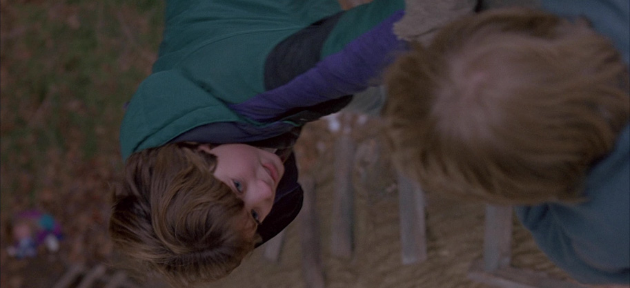 What else holds up is the crisp cinematography and sweeping overhead shots by DP John Lindley (THE SERPENT AND THE RAINBOW), which captures the frigid and frosty winter environment of Coastal Maine. Whether it’s the establishing shots, the treehouse shots, or the iconic cliff locale that Susan goes to mourn and meditate…they photography in the film has not lost any of its lusters in the last 25 years. The balletic camera moves and static framing both work well together, which also helps pace the film in a way that stays engaging right until the very end. As aforesaid, the visual foreshadowing Lindley showcases here is very interesting as much of the camera placement hovers overhead, giving us glimpses of what’s to come. The ominous cliffside looms like a specter in several shots, informing us that something evil will inevitably transpire in this very space.