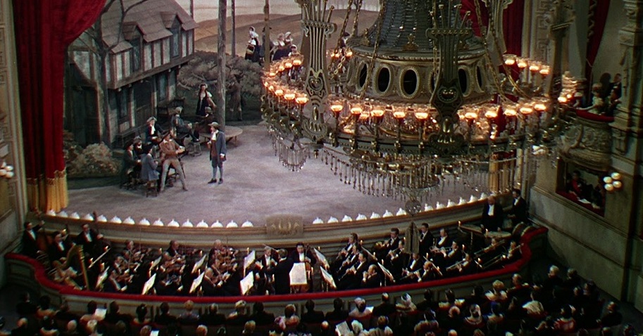 Shot by Hal Mohr and W. Howard Greene, with the production designed by Ira Webb, John B. Goodman, Russell A. Gausman and Alexander Golitzen – the sheer size, scale, scope, sheen and absolutely beauteous Technicolor enhancement of THE PHANTOM OF THE OPERA is beyond reproach. Seriously, it remains one of the most handsome and elegant productions one can recall, a feat made all the more impressive considering the movie was in the middle of WWII. Adjusted for inflation, its $1.75 million budget would equate to roughly $26 million in today’s dollars, which gives you an idea of how much Universal thought to invest in such a well-known story. To wit, the same Universal back-lot that the 1925 silent version was filmed on – Stage 28, the oldest standing film set in the world, which is purportedly haunted – was used again here to replicate the sprawling Paris Opera House. A brilliant decision, as the production value couldn’t be more ornately suited for the material.