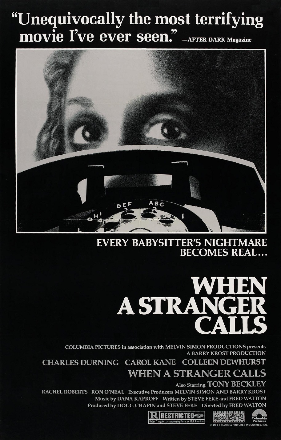 That’s right y’all, WHEN A STRANGER CALL(GET IT HERE) turns 40 later this month. I’m not sure how you feel about the flick, but to me, it’s as seminal as any horror movie in the way it fostered my love of horror from an early age. Having watched it with my older sister and cousin at way too young an age, I was left both psychically scarred and psychologically steeled for years to come. The flick petrified and prepared me at once. And much like the urban legend it’s based on, I couldn’t stop telling my friends about how truly terrifying the movie was at the time. Of course, the key phrase is “at the time.” It’s hard for any movie to stay fresh after 40 years, but what about a movie that relies so heavily on said timeless urban legend? We shall find out when we put WHEN A STRANGER CALLS against The Test of Time below!
