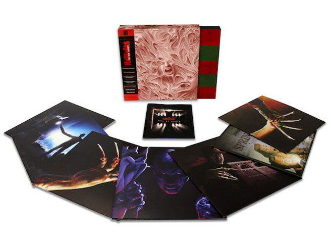 The box set includes Charles Bernstein’s music for the original 1984 movie, as well as work by Angelo Badalamenti (A NIGHTMARE ON ELM STREET 3: THE DREAM WARRIORS) and others. James Plotkin lent his skillful remastering techniques the records, which are pressed on 180 gram black vinyl. Also included in the set are prints of original artwork for each film score by ink slinger Mike Saputo.