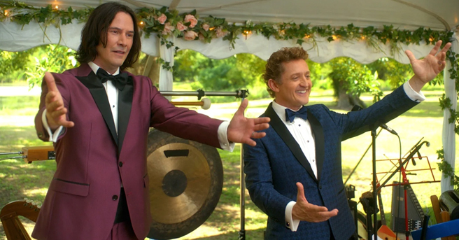 It was announced today that the production is calling on you to film yourselves, your family, your friends, or even your pets rocking out with instruments – either real or fake – or go full-on air guitar to a provided demo track for the chance to appear in BILL & TED FACE THE MUSIC. You can check out partyonwithbillandted.com for the demo track and learn how to submit your video. The submission deadline for the videos is May 20th, so get to work! In addition to Keanu Reeves and Alex Winter, BILL & TED FACE THE MUSIC also stars Brigette Lundy-Paine as Billie Logan, Ted's daughter, Samara Weaving as Thea Preston, Bill's daughter, and William Sadler as Death, as well as Scott Mescudi (Kid Cudi), Kristen Schaal, Anthony Carrigan, Erinn Hayes, Jayma Mays, Jillian Bell, Holland Taylor, Beck Bennett, Hal Landon Jr., and Amy Stoch. BILL & TED FACE THE MUSIC was directed by Dean Parisot from a script by Chris Matheson and Ed Solomon.