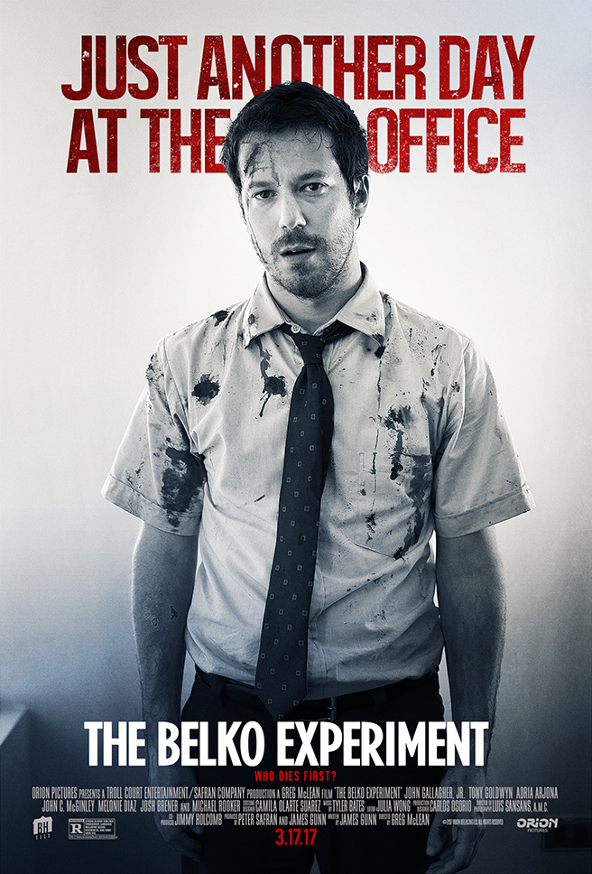 Just last night, while waiting to watch LOGAN (AKA the best damn X-Men movie to date in my humble opinion) at my local theater, I caught the trailer for Greg McLean's THE BELKO EXPERIMENT on the big screen. It was a lot of fun to sit there and gauge the audience's reaction to the footage. I counted at least two gasps, one wince, and there was definitely a fist pump from one very enthusiasic patron. The film is being described as BATTLE ROYALE meets OFFICE SPACE, and I've got to tell you, that descriptor is definitely going to put my ass in a seat when the film opens on March 17, 2017.