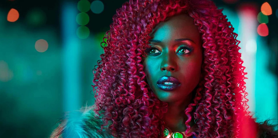 Yesterday, Diop posted a video to her personal Instagram account that features a glimpse of Starfire's new look for Season 2. Gone is the character's fur coat, shiny purple dress, and corkscrew curls. Instead, Diop looks to be sporting a royal purple top that exposes her midriff, tight, leathery pants, and a mop of semi-straightened wine-colored strands atop her head. Before shining a flashlight in our eyes, she flashes us a knowing smile, telling us that Season 2 is on the way, and that Starfire is likely up to no good.