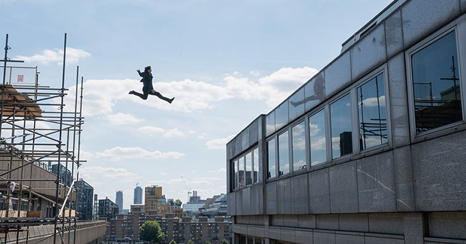Cruise took to Twitter to post a new MI6 pic of him leaping from one structure to the building next to it, after what we can assume was the greatest sprint ever seen by mankind. I can only imagine that when he took the leap everything went slo-mo as “Free Bird” started miraculously playing out of thin air.