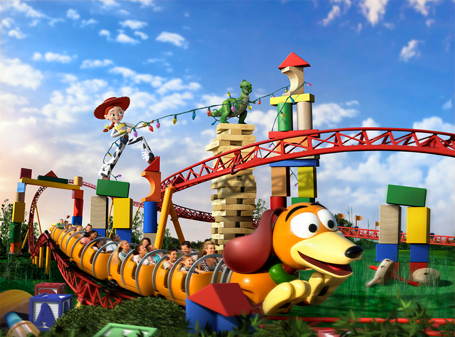 Below are some images from the theme park, teasing rides and attractions like Slinky Dog Dash rollercoaster; the Alien Swirling Saucers, a ride inspired the "claw" scene in TOY STORY; and Woody’s Lunch Box, a place where you can sit back and have a snack, just like the real toys do. You can also take a look at an aerial view of the park, which stretches across 11 acres of land, which will surely be populated by some of your favorite characters, as well as plenty of Army Men and Legos scattered about to pierce through your shoe.