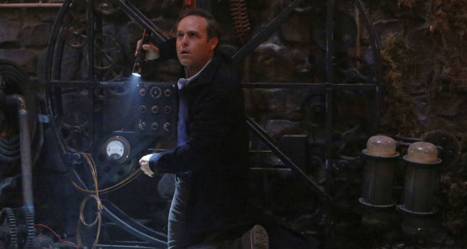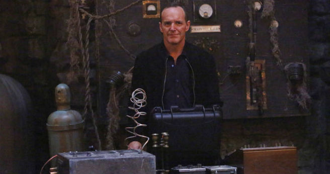 First things first, many theorized that the Asgardian teased in the synopsis would be Thor or Lady Sif but instead we get the return appearance of Peter MacNicol as Professor Randolph. An undercover Asgardian who has lived on Earth for hundreds of years, Randolph first appeared in the first season of the series. Brought in to help the team figure out what the monolith is and how to rescue Simmons, Randolph leads the agents to an abandoned castle in England where they find a hidden chamber with a machine designed to change the ancient rock to it's liquid form. Randolph agrees to help the team under the condition that they destroy the portal once they rescue Simmons and Coulson readily agrees.