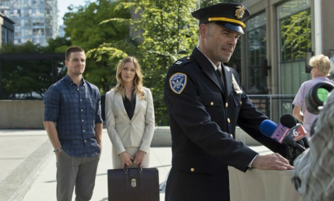 As for villains, the great Pete Stormare is introduced as the new Vertigo, adding new ingredients to the former drug to make it more formidable. During a pursuit of some bad guys, Arrow runs into Captain Lance in the sewers and thanks him for absolving him of being a criminal. At her new job as tech support for a computer store, Felicity meets Brandon Routh as Ray Palmer, the new man in charge at Queen Consolidated. Routh looks exactly the same as he did when he played Superman and it is a cool addition to the cast.