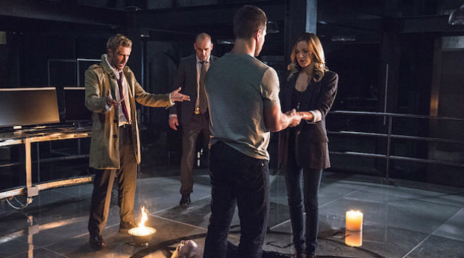 Review: John Diggle says it best in tonight's mystical hour of Arrow: "Just when I was getting used to the idea of meta-humans…". With Damien Darhk's powers on display and the use of the Lazarus Pit integral to the story arcs for Thea Queen and Sara Lance, Arrow has gone full tilt into the world of magic and mysticism begun with the League of Assassins and coming to a head with the appearance of John Constantine (Matt Ryan). While his NBC series may be over, Constantine's role this week definitely makes a case for him to make return appearances on Arrow. We also get a wrap-up for the return of Sara Lance and some closure for Diggle in regards to his brother's death.
