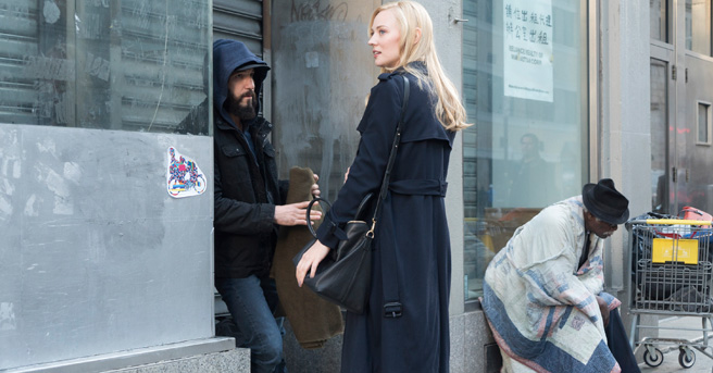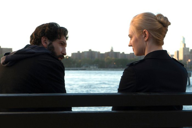Frank is then seen later begging as a homeless man when Karen Page walks by. Frank asks for change and she gives it up. She then brings him back to her apartment when he asks if they can talk. She offers him a drink and Frank agrees. “You look well. Very Hipster.” (I guess having a beard is hipster?). She asks where he’s been and he tells her he had business to finish. He asks her if she’s said anything about him being alive to anyone. She says no and he asks for her help in finding Micro. She asks how to contact him and he gives her flowers. “I’m old fashioned that way.” Saying she could put them in the window if she gets any info. He starts to go and she hugs him, rather dramatically. There’s definitely some sexual tension there. Daredevil is gonna be pissed.