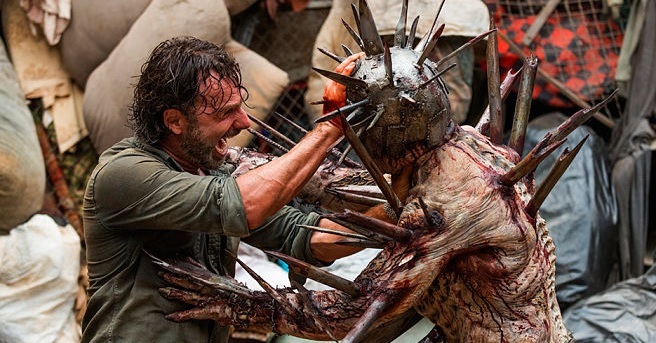 BEST ZOMBIE MOMENT: Of course, this episode was owned by Winslow, the pet walker of The Scavengers. This guy was a formidable opponent for Rick and looked really cool while at the same time being a ridiculous concept. Looking at him, I could only wonder how much time The Scavengers had wasted sticking those spikes into him and making that helmet. It's incomprehensible, but it was fun to see Rick trying to fight Winslow off while getting cut by his spikes.