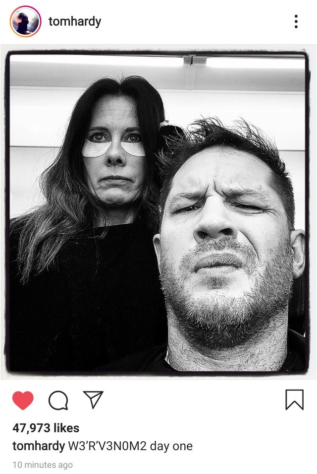 MOGLI director and LORD OF THE RINGS actor Andy Serkis will helm VENOM 2 with Tom Hardy this fall. And today we learned from Hardy is over on Instagram that filming has begun on the much-anticipated sequel. His post has since been deleted (probably by Sony) but a user on Reddit snagged a screenshot. Check it out below!