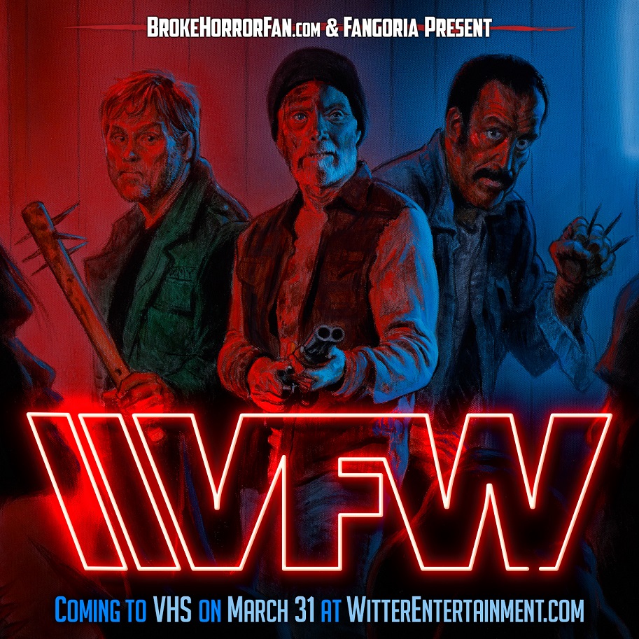 ALMOST HUMAN, THE MIND'S EYE, and BLISS director Joe Begos' VFW starring Stephen Lang, William Sadler, Fred Williamson, and Martin Kove was released in theaters on on-demand earlier this year. And today we hear that Broke Horror Fan and Fangoria will be bringing us the flick on limited edition, fully-functional VHS! It goes on sale at WitterEntertainment.com next Tuesday, March 31, 2020.