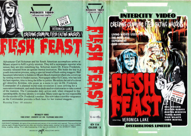 Veronica Lake was a Hollywood icon, but in her final role she made a movie that should have been left unfilmed. Still, this is a bizarre movie about maggots that is exactly what teens scouring video store shelves would have loved to have found. Both boxes look like something forbidden and taboo. Click here to purchase on Blu-ray/DVD.
