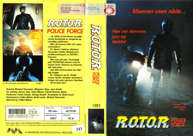 If you see one movie about a robot cop, forget ROBOCOP, make it R.O.T.O.R. Sure, Paul Verhoeven's movie may be a classic, but does it have a VHS cover that looks like cross between MAD MAX and TERMINATOR?. Click here to purchase on Blu-ray/DVD.