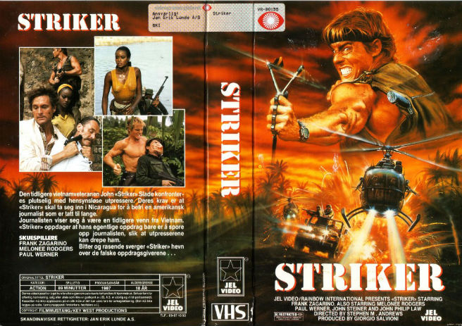 A knock-off of RAMBO and any number of Chuck Norris movies, STRIKER looks like B-movie perfection. Plus, there are boobs on the back cover. Not available on DVD, but if you have seen it, let us know if it lives up to the box art.