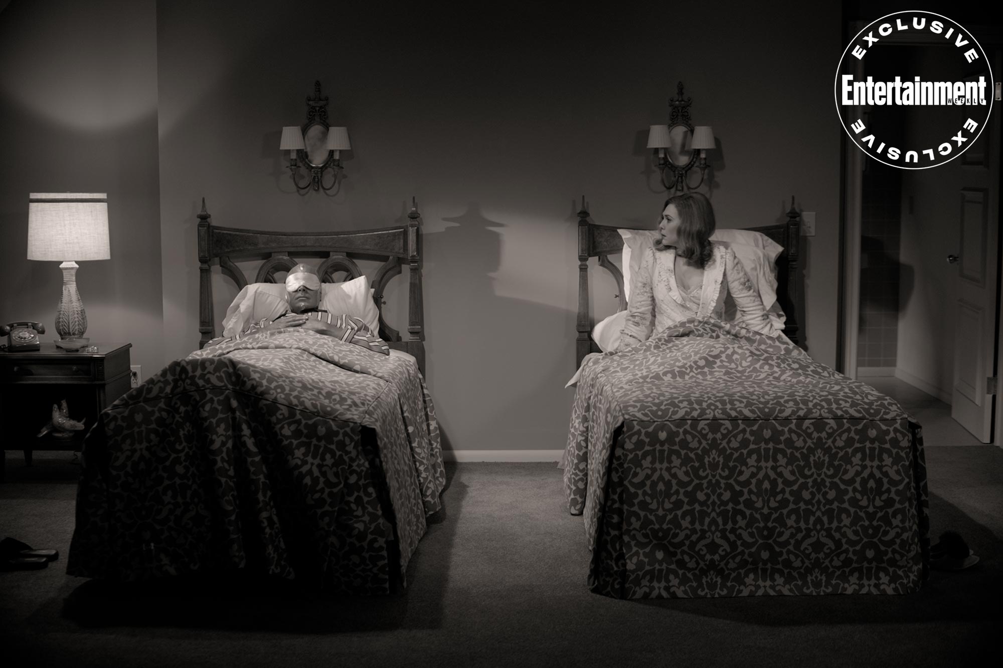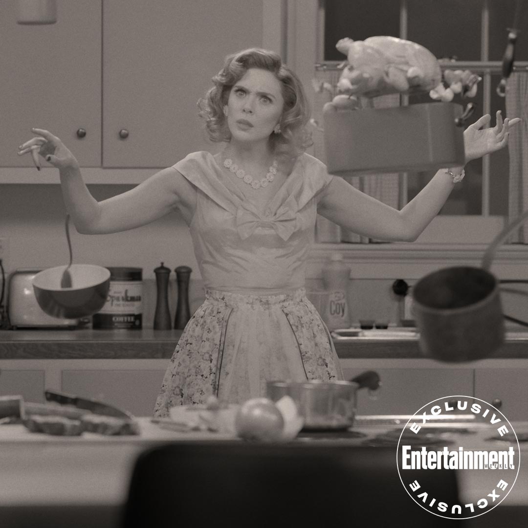 It's revealed in "Entertainment Weekly" that Marvel opened the set of WandaVision up to visitors and it became clear that the Elizabeth Olsen and Paul Bettany series will be a superhero infused send-up to TV comedies of the past like Bewitched and I Dream of Jeannie. The crew reportedly came to set in ’50s-era clothing and used period lenses and lighting to capture the look of these classic and beloved TV comedies.