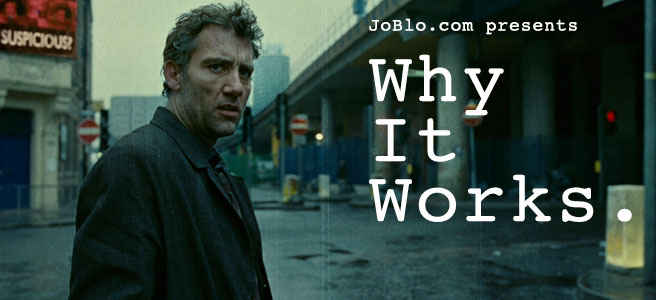 The year is 2027, humans have lost the ability to procreate, and the world has gone to shit. The United Kingdom, while one of the few functioning societies left, has become a volatile police state full of desperate refugees, corrupt officials, militant activists, and people who will stop at nothing to get ahead. Alfonso Cuarón's CHILDREN OF MEN paints a dark tale of the future, where even our protagonist seems as grim as the political landscape- and yet Cuarón and company fill the cracks with just enough light and traces of hope to keep us hanging on until the end. Here's why it works: