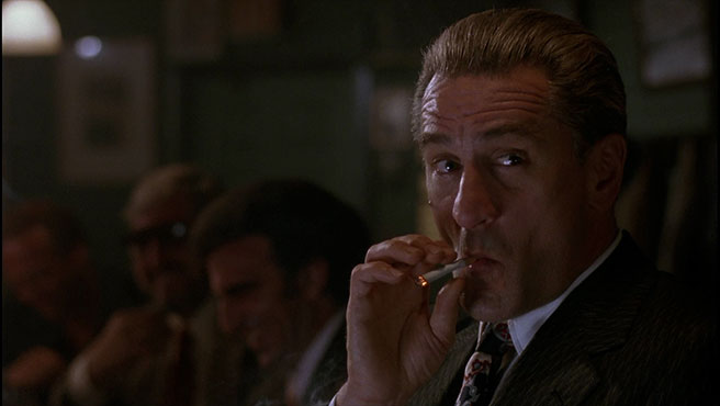 “As far back as I can remember, I always wanted to be a gangster.” Right from Henry Hill’s opening narration, we have our first glimpse of GOODFELLAS‘ hook. Henry begins his relationship with organized crime as a fresh faced kid, looking on in a state of wonder. Once we cut to an experienced, adult Henry, we still see him as that child wanting to fit in and do right by his elders- as well as throwing the occasional tantrum. This is our way into most of the characters in the film; it’s not just that they’re “regular guys” so much as they’re regular guys who want to be larger than life- a yearning to which we can all relate. We see the childlike quality most in Tommy DeVito (and in Joe Pesci‘s Oscar-winning performance), who plays fast and loose not only with the actual law but also the law within the Family. There are only five on-screen deaths in GOODFELLAS, two of which are a result of Tommy’s short fuse, and one of which is Tommy himself as a consequence to his actions. Jimmy Conway and Paulie Cicero serve respectively as an elder brother and father figure to Henry. Both characters are cool and collected while also maintaining a strict set of rules and a loyalty to those who remain loyal to them. Finally, Henry’s wife Karen gives us an outsider’s view of the plot as she struggles between remaining devoted to her husband and losing tolerance for his dangerous lifestyle. Oh, also, there was Anthony Stibiles, Frankie Carbonie, Moe Black’s brother Fat Andy, Frankie the Whop, Freddy No-Nose, Pete the Killer who was Sally Ball’s brother, Mickey Eyes, Fran Chesey, Jimmy Two-Times… and the list goes on.