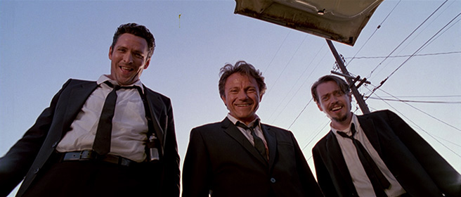 Just over two years ago, my very first article for this site was a Why It Works on PULP FICTION, in which Tarantino uses a similar strategy to get us on board with his less-than-heroic protagonists. The opening diner scene is all we need to know who these guys are. For one, in their discussion of "Like A Virgin" and other songs, we see a bunch of regular guys sitting around shooting the shit, not a pack of smooth criminals spouting slick one-liners. Moreover, when Mr. Pink refuses to leave a tip, the other men gang up on him, showing their concern for the waitress and the meager wages she earns for a thankless job. Before we see them as criminals and killers, we see them as familiar faces with whom we can easily identify.