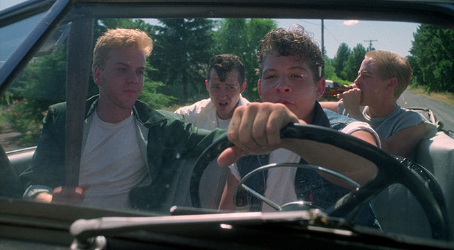 As any movie about kids on an adventure should, STAND BY ME features a group of unique, memorable, and at lovably naïve protagonists. Jerry O'Connell's Vern Tessio is the classic "I don't know if this is such a good idea" guy, Corey Feldman's Teddy Duchamp is the crazy one, who'll take on a speeding train to quell the pain of personal issues, River Phoenix's Chris Chambers is the kid from the wrong side of the tracks, already resigned to the life of a ne'er-do-well, and Wil Wheaton's Gordie Lachance is our everyman hero, doomed to live in the shadow of his deceased brother, Denny. In Gordie's memories of Denny and determination to find the body of Ray Brower, we see a character who needs to confront and overcome his anguish. He hasn't quite figured out how or why this particular adventure will help, though, which in a way further endears us to him, as we can all relate to the feeling of needing something without knowing exactly what it is. Meanwhile, Kiefer Sutherland's Ace Merrill and his gang of misfits serve as the prototypical bad guys of the story, though their scenes also give us an insight into a different stage of adolescence, where cynicism and general disappointment have set in, and the only recourse is rebellion.