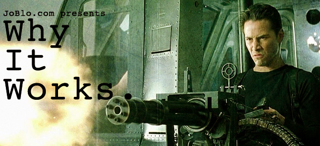 Just like we discussed with the narrator in FIGHT CLUB in Why It Works’ previous installment, we’re a sucker for the frustrated everyman. Many of us spend 40+ hours a week sitting in an office thinking about all the ways in which we could achieve greatness if we only had the chance, so it doesn’t take long for us to identify with the restless Thomas A. Anderson and cherish the chance to live vicariously through him. It should also be noted how perfect Keanu Reeves is for a role like this. Brad Pitt, Will Smith, and Tom Cruise (all of whom were considered for the role) emanate a natural confidence, so it’s easy to see them as the hero right at the onset of the story. Keanu is charming to be sure, but he brings a certain innocence to the role, which, as with Harry Potter or Luke Skywalker, makes his rise to greatness that much more exciting.