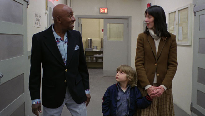 Jack Torrance is not a likable guy. He's not really unlikable at first, either, but specifically there isn't anything that endears us to him. When Wendy shares that he hurt Danny once and quit drinking as a result, it's a double-edged sword, as Jack is painted both in a dangerous light and as someone determined to right his wrongs. Stephen King wanted a more wholesome actor than the manic Jack Nicholson cast so that we could see him fight against and eventually fail to overcome his demons. This clearly wasn't Kubrick's intention, though, and so we get a character who feels a bit off right away. What allows for this is the portrayal of Wendy and Danny and even Dick Hallorann as purely good characters, thus giving us protagonists to adhere to while Jack is slowly inhabited by the spirit of the Overlook Hotel. King also admonished the film's flimsy, demure portrayal of Wendy, and I'm sure many of us in 2016 would agree, but in Shelley Duvall's Wendy we have both the only character completely unaffected by the hotel and a wife and mother who will do anything to keep her family happy. Arguably, this is exactly what puts her and Danny in danger in the first place, but we can't help but feel that at least her heart is in the right place. Finally, while THE SHINING doesn't offer much in the way of character development, we do see three people who are trying to cope with their immediate situation. Jack doesn't give into what's possessing him right away, trying to pull back at first, and Wendy and Danny are doing their best to deal with Jack's transformation, a much more complicated obstacle than that of the traditional monster-in-the-house story.