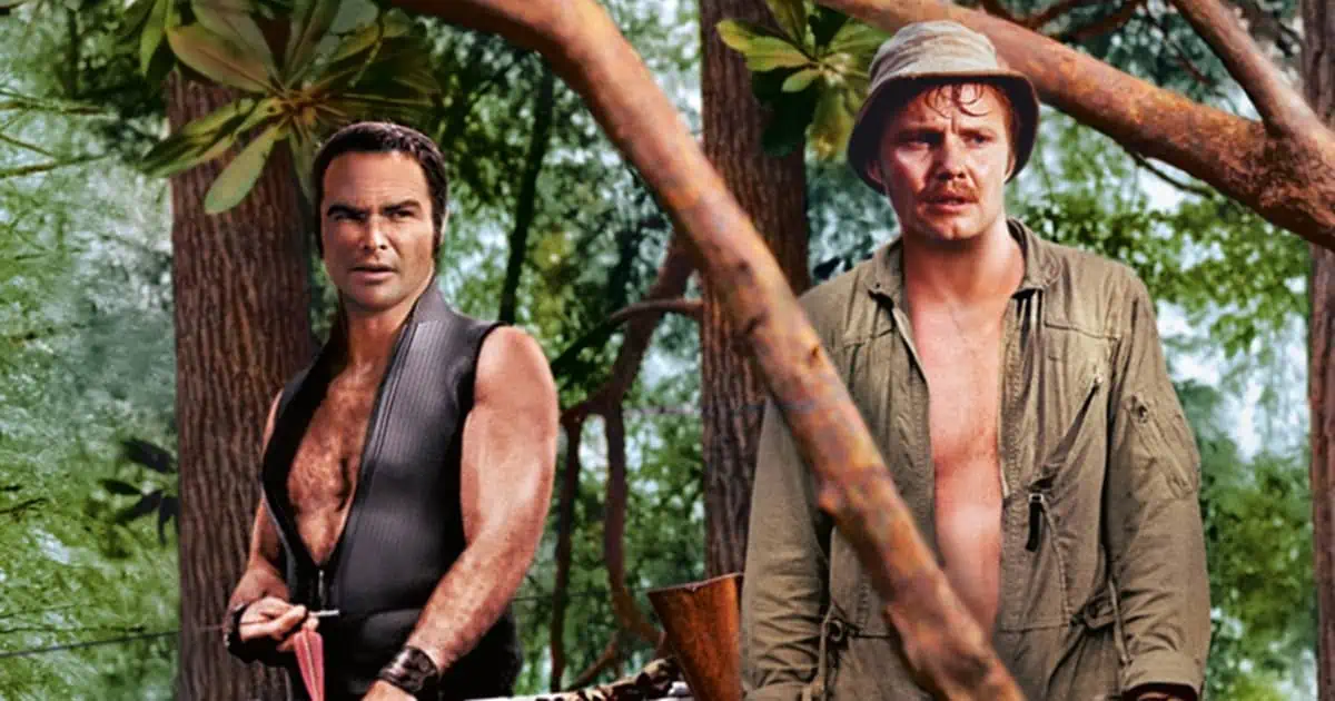 Deliverance tells the tale of some Atlanta businessmen who decide to canoe down a river in the Georgia wilderness before it gets damned. They are led by Reynolds’ Lewis, a swaggering, macho outdoorsman. Jon Voight’s Ed is his best friend, a more casual outdoorsman, while Ned Beatty and Ronny Cox are their city slicker pals. After a disastrous run-in with forest-dwelling psychos leads to much squealing, the group must fend for themselves in the dangerous wilderness. This becomes especially dangerous once Lewis is brutally sidelined and Ed must become the team’s alpha male.